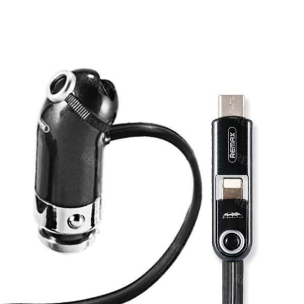 Зарядка имеет удобный двойной витой силиконовый шнур длиной 1,5 метра с мульти-кабелем для зарядки устройств с разъемами Lightning, Type-C. Зарядка в прикуриватель с дополнительным выходом USB + подсветка.
