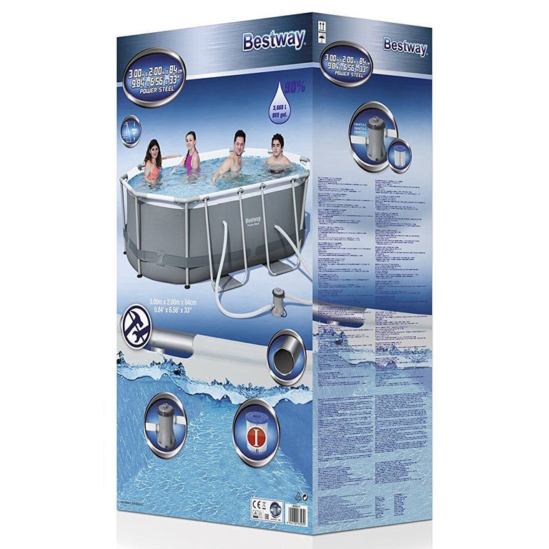 Каркасный прямоугольный бассейн BestWay 56671 Power Steel Pools. Чаша выполнена из высококачественного трехслойного ПВХ: два слоя плотного винила и один - полиэстер для особой прочности. Каркас металлический, нержавеющий, оцинкованный.