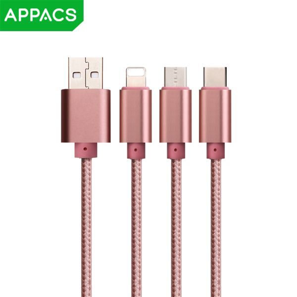 Кабель APPACS AP154, 3в1, microUSB/lightning(iPhone)/Type-C, 5V/3A, 1.2 метра