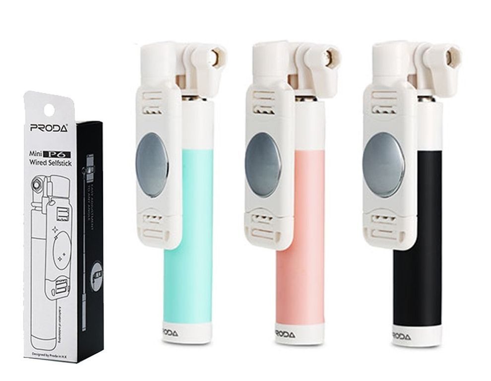 •Фирменный монопод Remax Proda, модель - PP-P6 mini, c проводом и зеркалом - черного цвета. Данная модель монопода работает с любыми устройствами, работающими на IOS и Android.